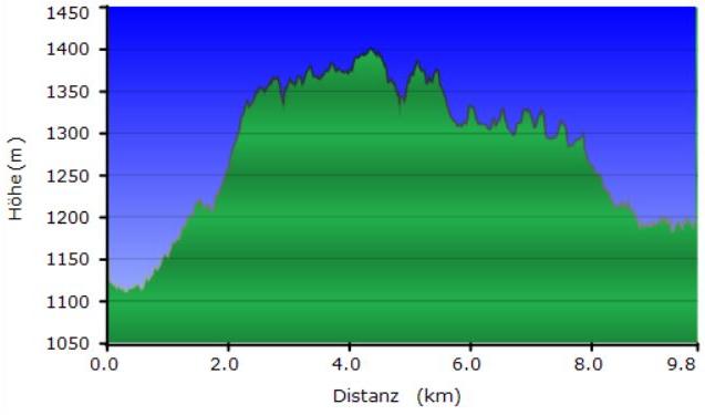 knapp 10 km zu gehen und wir bewegen uns in einer Höhe zwischen 1010m und 1401m. Der Rest ist Bahn- und Busfahrt.