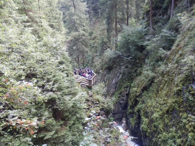 Das Frühstück ist lecker und es geht etwas ruhiger zu. Wir bekommen unsere Ausweise zurück und es gibt eine Tourismuskarte für Bus- und Bergbahn. Schön für uns, denn wir nehmen den Bus vom Bahnhof Gossensass über Sterzing Nordpark (Umstieg) nach Stange zur Gilfenklamm. Wir durchqueren die Gilfenklamm und folgen danach dem Weg durch das Tal bis Ratschings und unserem Hotel Alpenspitz. Der Weg durch die Klamm war relativ voll und auf den engen Passagen musste auch der Gegenverkehr vorbei. Nicht wirklich ein Vergnügen. Der Weg danach zog sich länger hin als gedacht und es war heiss. Am Ende waren wir froh, im Hotel angekommen zu sein und konnten uns im Hotel freuen über: Freundliche Leute, tolles Abendessen: Salat vom Buffet, Griesnockerlsuppe, verschiedene Nudeln vom Buffet, Schweinefilet in Pfefferrahmsauce mit Kartoffelgratin, Creme Brulet (zum Hinsterben), Birnenbrand zum Abschluß.