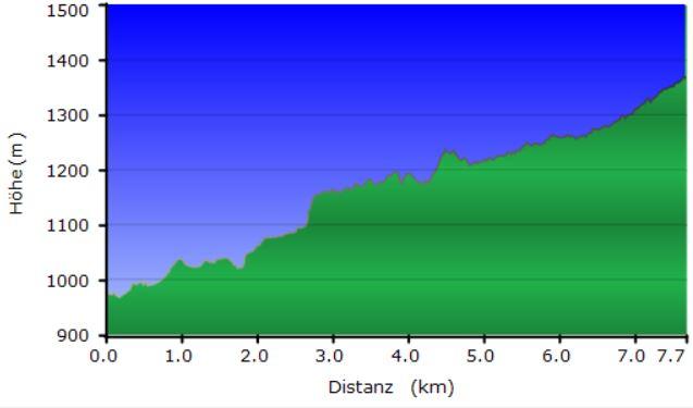 zu gehen und wir bewegen uns in einer Höhe zwischen 973m und 1370m aufwärts.