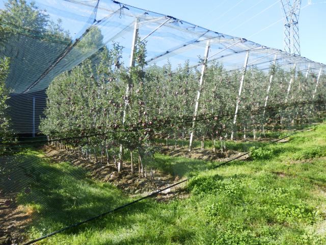 Immer wieder sehen wir Kastanien am Wegrand stehen und immer wieder passieren wir Apfelplantagen. Die Obstbäume sind