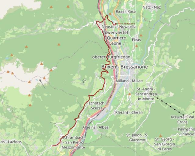 Die Wanderung startet am Eingang des Augustinerklosters in Brixen, führt im Norden um Brixen herum und endet an