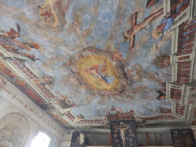 Im Kloster angekommen schauen wir uns dort um und bewundern in der Kirche die bunten Wand- und Deckengemälde. Auch heute