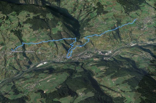 unserer Unterkunft in Villanders. Es sind 10,4 km zu gehen und wir bewegen uns in einer Höhe zwischen 540m und 900m