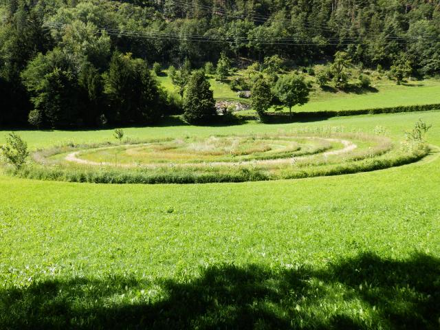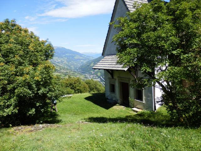 zur Kirche. Diese ist zwar verschlossen, aber es ist ruhig dort mit einem Blick ins Tal.