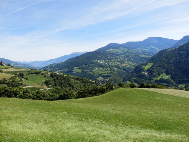 Auf und Ab vorbei an Wiesen erreichen wir nach 5 km Barbian. Eigentlich sollten wir letzte Nacht hier unterkommen, aber