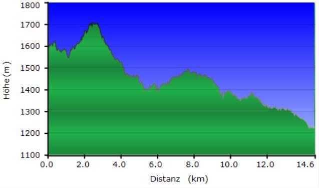 Es ist Montag und vor uns liegt eine Strecke von knapp 15 km in einer Höhe von 1225-1709 m.