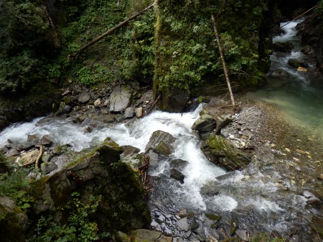 Das Frühstück ist lecker und es geht etwas ruhiger zu. Wir bekommen unsere Ausweise zurück und es gibt eine Tourismuskarte für Bus- und Bergbahn. Schön für uns, denn wir nehmen den Bus vom Bahnhof Gossensass über Sterzing Nordpark (Umstieg) nach Stange zur Gilfenklamm. Wir durchqueren die Gilfenklamm und folgen danach dem Weg durch das Tal bis Ratschings und unserem Hotel Alpenspitz. Der Weg durch die Klamm war relativ voll und auf den engen Passagen musste auch der Gegenverkehr vorbei. Nicht wirklich ein Vergnügen. Der Weg danach zog sich länger hin als gedacht und es war heiss. Am Ende waren wir froh, im Hotel angekommen zu sein und konnten uns im Hotel freuen über: Freundliche Leute, tolles Abendessen: Salat vom Buffet, Griesnockerlsuppe, verschiedene Nudeln vom Buffet, Schweinefilet in Pfefferrahmsauce mit Kartoffelgratin, Creme Brulet (zum Hinsterben), Birnenbrand zum Abschluß.
