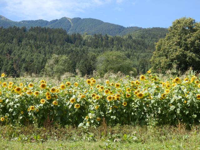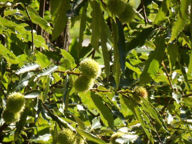 Immer wieder sehen wir Kastanien am Wegrand stehen und immer wieder passieren wir Apfelplantagen. Die Obstbäume sind
