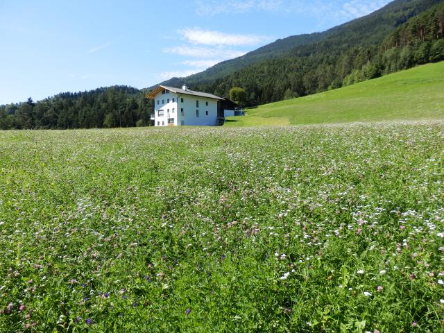 In unserem heutigen Zielort Feldthurns liegt unsere Unterkunft am gegenüberliegenden Ortsausgang. So gehen wir jetzt