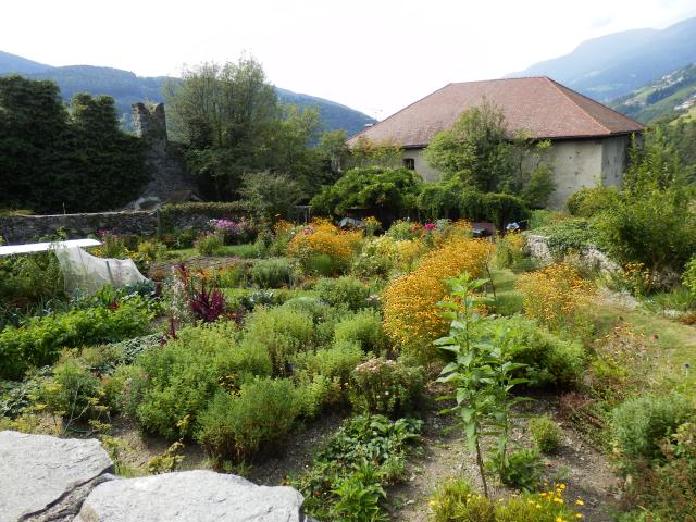 jetzt durch Apfelplantagen abwärts darauf zugehen. Von dieser nördlichen Seite wirkt es wie eine Festung am Rande eines