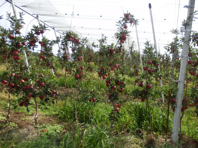 Bereich an einer Apfelplantage entlangführt. Er ist einfach zu gehen, liegt aber jetzt um die Mittagszeit mitten in der