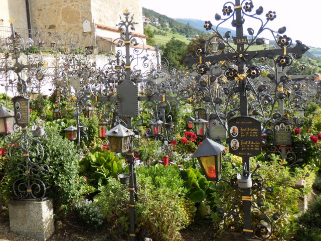 zur Kirche. Diese ist zwar verschlossen, aber es ist ruhig dort mit einem Blick ins Tal.