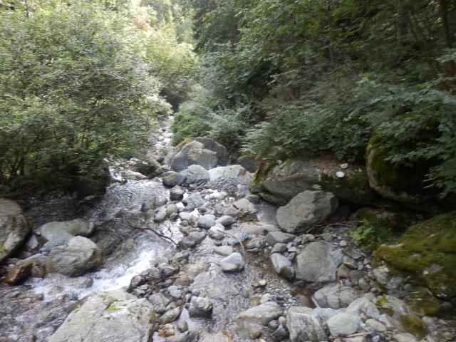 kurze Zeit später und folgen einem schmaler werdenden Waldweg und dann Trampelpfad. Wir sind wieder allein. In sanftem